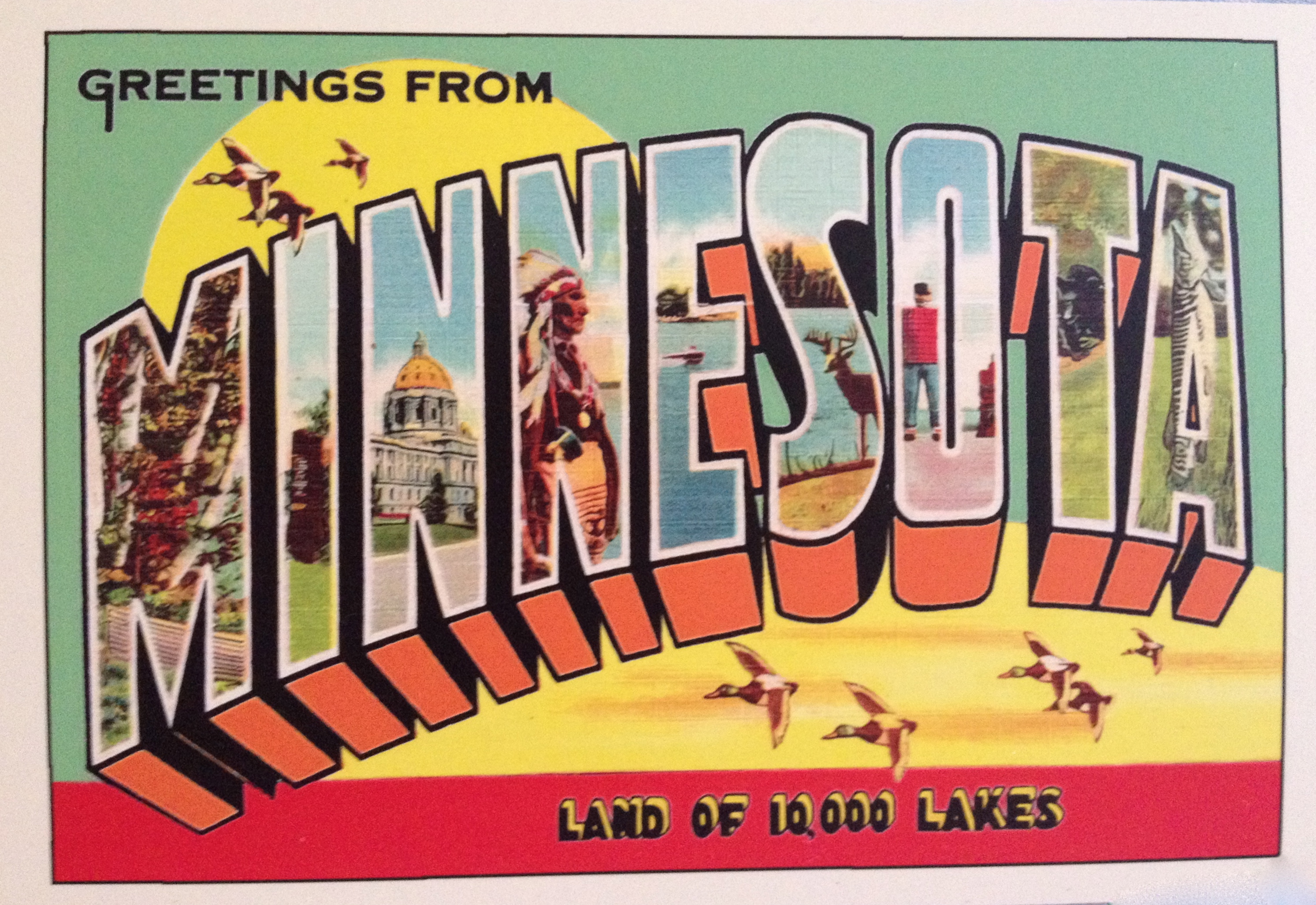 Located on the Canadian border, smack bang in the middle of the US, Minnesota is indeed a land of many lakes. While this postcard does sell them a bit short (there are in fact about 15,000 lakes and that doesn’t include those with more pond-like dimensions), it communicates the basic facts: there are a LOT of water bodies in this part of the world. And for someone who is partial to water, that is a pretty cool thing.